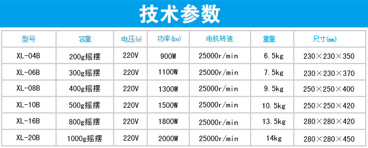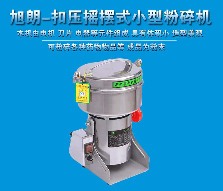 3、摇摆式粉碎机有200g/300g/400g/500g/800g/1000g共6种型号。
