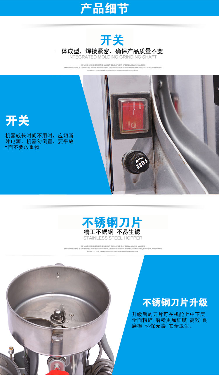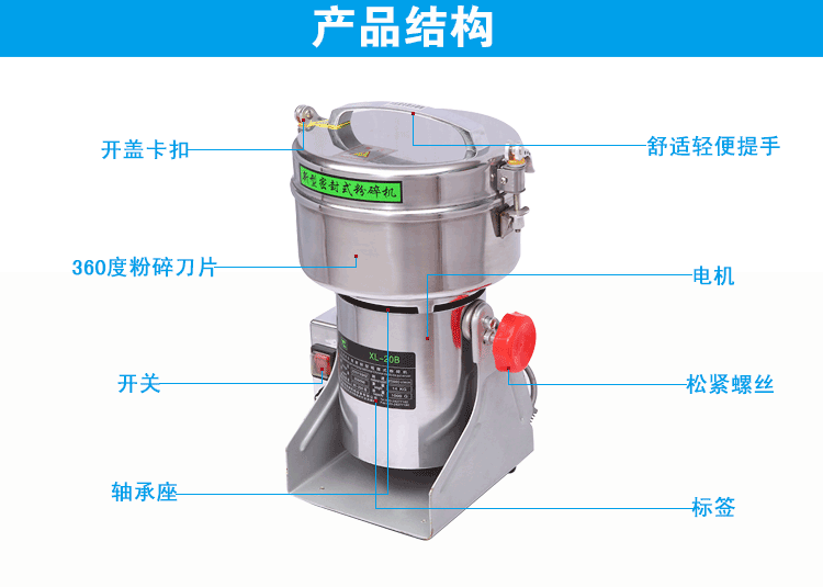 2、本机优点在于粉碎室和盖子未采用传统的螺纹设计,而是采用密封圈密封免螺丝设计,盖合非常容易,不会出现