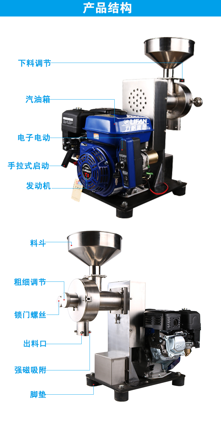 星空官方网站(中国)汽油磨粉机工厂直供价:3600元 广州市星空官方网站(中国)机械通过质量监督检验合格产品,本机上市以来客户操作使用上所发现的一些实际问题, 我司组织研发、技术队伍在设计、材质、性能、外观,进行反复试验,多次改进、改良,不断提高机器零配件 加工工艺,不断改善机器装配工艺流程,基本保持1.5—2年对产品更新换代一次,目前在市场上的主打产品为 第三代机型,真正、彻底解决磨粉不够细腻、卡机、产量低、噪音大等其他公司同类设备的通病,确保进出料 顺畅,噪音小,使机器能满足多数客户的使用需求。 2012年7月,星空官方网站(中国)机械为满足流动作业经营者的使用要求,研发制造了汽油机磨粉机,即“汽油发动机 +磨粉机”,不需连接电源,通过汽油发动机传动,适合流动式磨粉作业。本机可通过控制发动机油门的大小, 调节转速。 ![]() ![]() 我公司对配件的选用一直坚持更优、更好的原则,坚决杜绝劣质、低价的配件。本机整机(含汽油机)均保修一年。 我公司是生产厂家,相对于其他贸易商或者网店,我公司有强大的技术、人员保障和完善周到的售后服务体系,为 广大客户提供最优质的产品和终身的维修售后服务,解除客户的后顾之忧:保修期内属于质量问题,公司免费提供 配件和维修服务;超出保修期限或保修范围,公司也仅收取配件成本费。 ![]() 主要性能特点: 1、机身由304不锈钢铸造和精密加工而成,美观大方、不生锈,符合GMP要求。 2、更加卫生: (1)加装了4个强磁,吸附机器运转过程中磨片磨损的铁粉,干净卫生; (2)机器磨粉腔内不用涂抹润滑油(脂),不会对所加工物料造成污染,保证了食品、药物的安全卫生。 3、提高了机器零配件加工工艺,改进了机器装配流程,噪音低、进料通畅、下料更快、不堵料,磨粉细腻、无粉尘。 4、连续投料式生产,效率高。 5、操作简单方便。 (1)只需要将动磨片套上连轴器,轻轻旋转一下就可以把动磨片安装好。 (2)操作使用机器时,调节磨粉粗细更轻松省力。 (3)磨粉腔内物料余留少。 (4)进料快慢和出料粗细均可调节。 ,特别适用流动作业。加工范围广: (1)各种粮食:芝麻、核桃、大米、黑米、黄豆、绿豆、花生、莲子、玉米、高粱、大麦、荞麦、燕麦等; (2)各种干性药材:杏仁、茯苓、红枣、芡实、枸杞、薏仁、山楂、淮山、首乌、红豆、阿胶、乳香、菟丝子、当归 、党参、黄芪等。 工作原理: 磨粉机靠两块布满齿槽的磨片相对磨动、运转,从而将物料研磨成粉末。 7、友情提示:我司是全国最早开发汽油机的生产厂家,随后一段时间,国内一些小作坊、小型加工厂,先后仿制我司