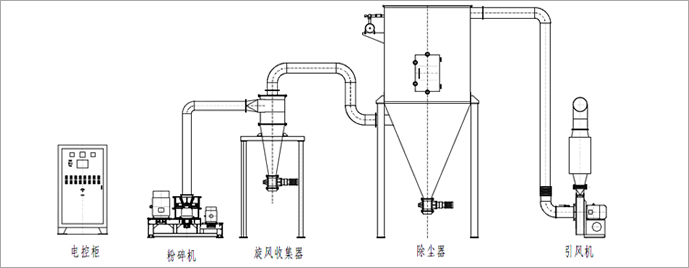 各型号超微粉碎机组都含主机、可调速的螺旋送料器、旋风收集器加气锤震荡装置、袋式除尘箱加气流脉冲