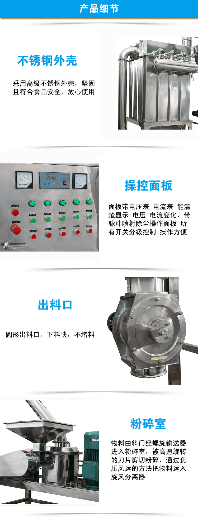 需求,非常适合药厂、食品厂、化工厂的高精度粉碎要求,粉碎细度可随意调节。