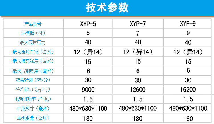 星空app官网生产的小型旋转式压片机有XYP-5、XYP-7、XYP-9三种规格,分别有5、7、9副冲模, |